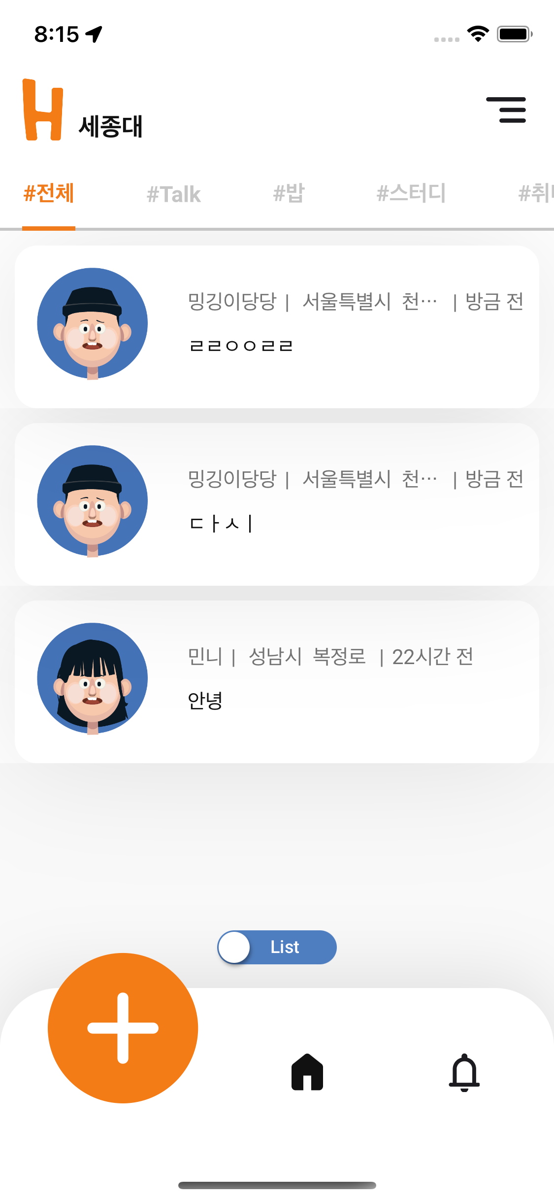 Snapkit을 이용해서 TableView 구현하기!! 아래와 같은 이미지처럼 TableView를 Snapkit으로 구현해야했었다! (Tabman 라이브러리를 쓰는바람에,,,ㅎㅎ)