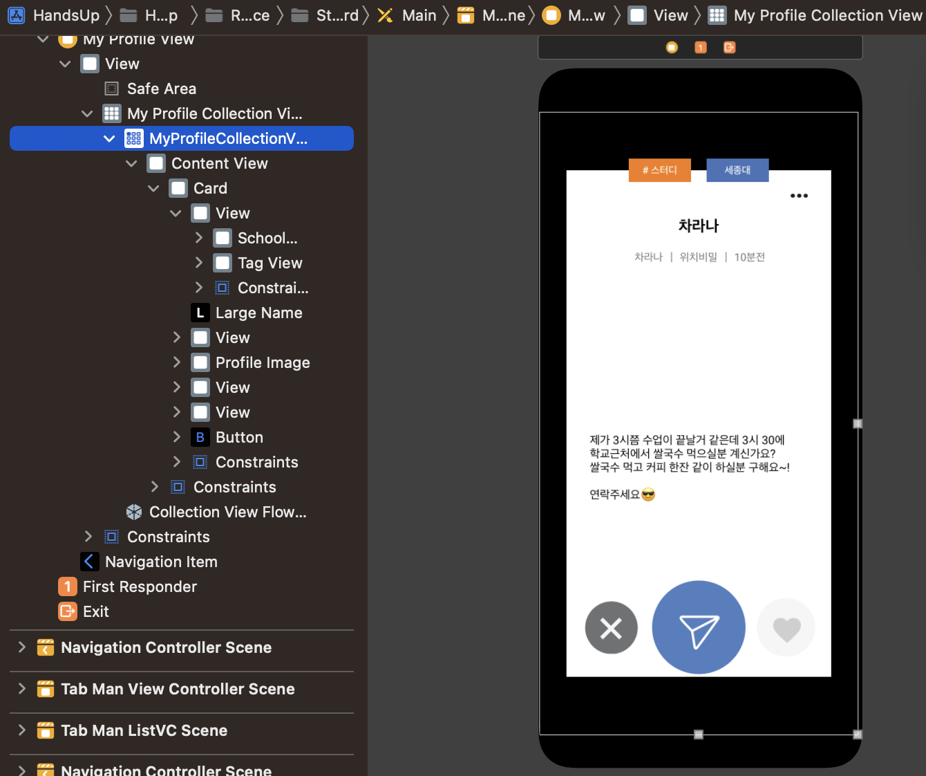 : UIKit을 이용해서 아래와 같은 구조로 UI를 구성하자. 나는 Cell의 크기를 410, 800으로 지정해주었다!